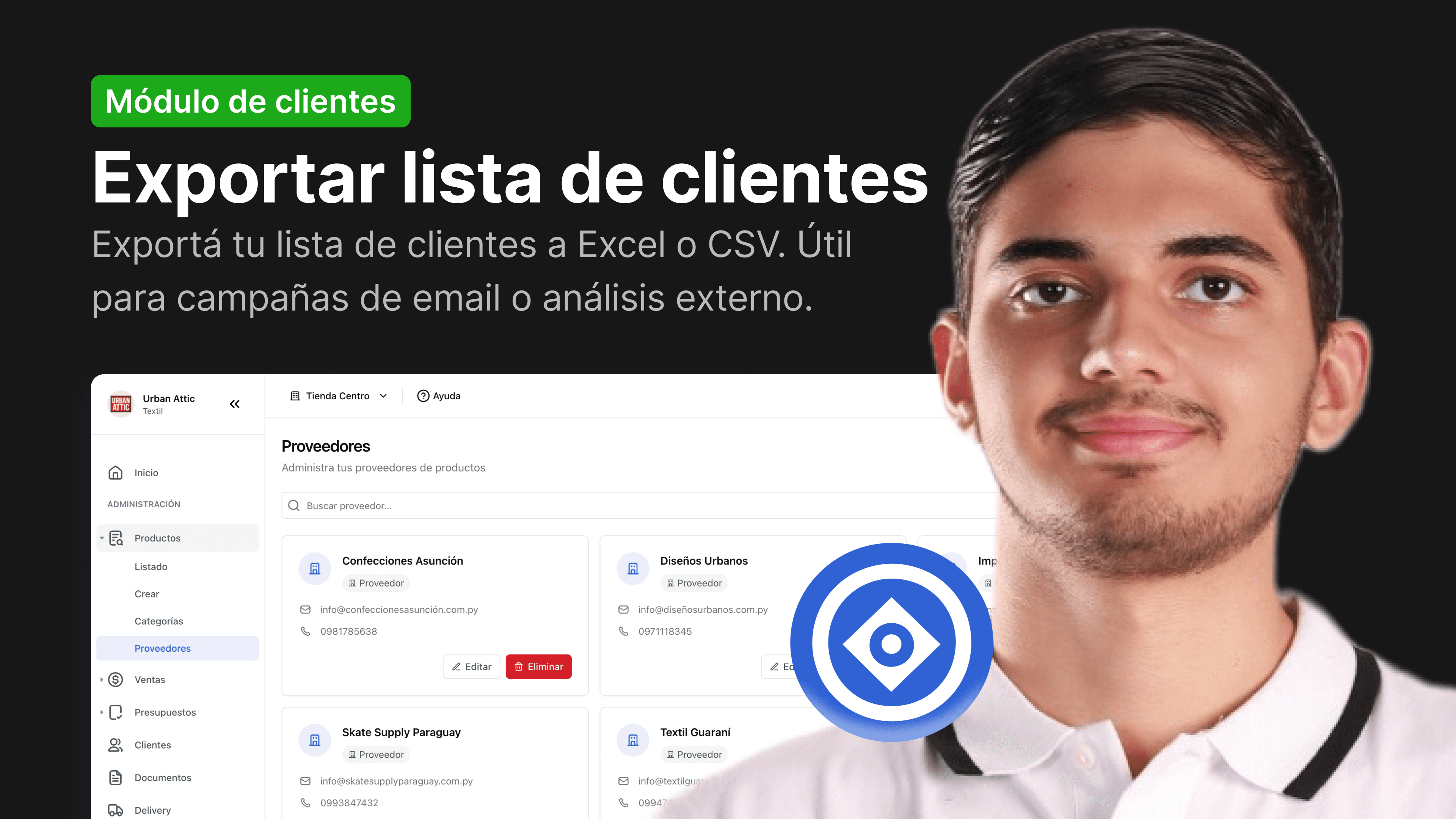 Exportá tu lista de clientes a Excel o CSV. Útil para campañas de email o análisis externo.